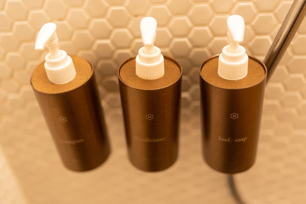 私のホテル巡りの楽しみ方の一つに、そのホテルのシャンプーを使うというのがあるのですが、『ホテル カンラ京都』では「ペリカン石鹸C3シリーズ」というものを使用されているそうです。